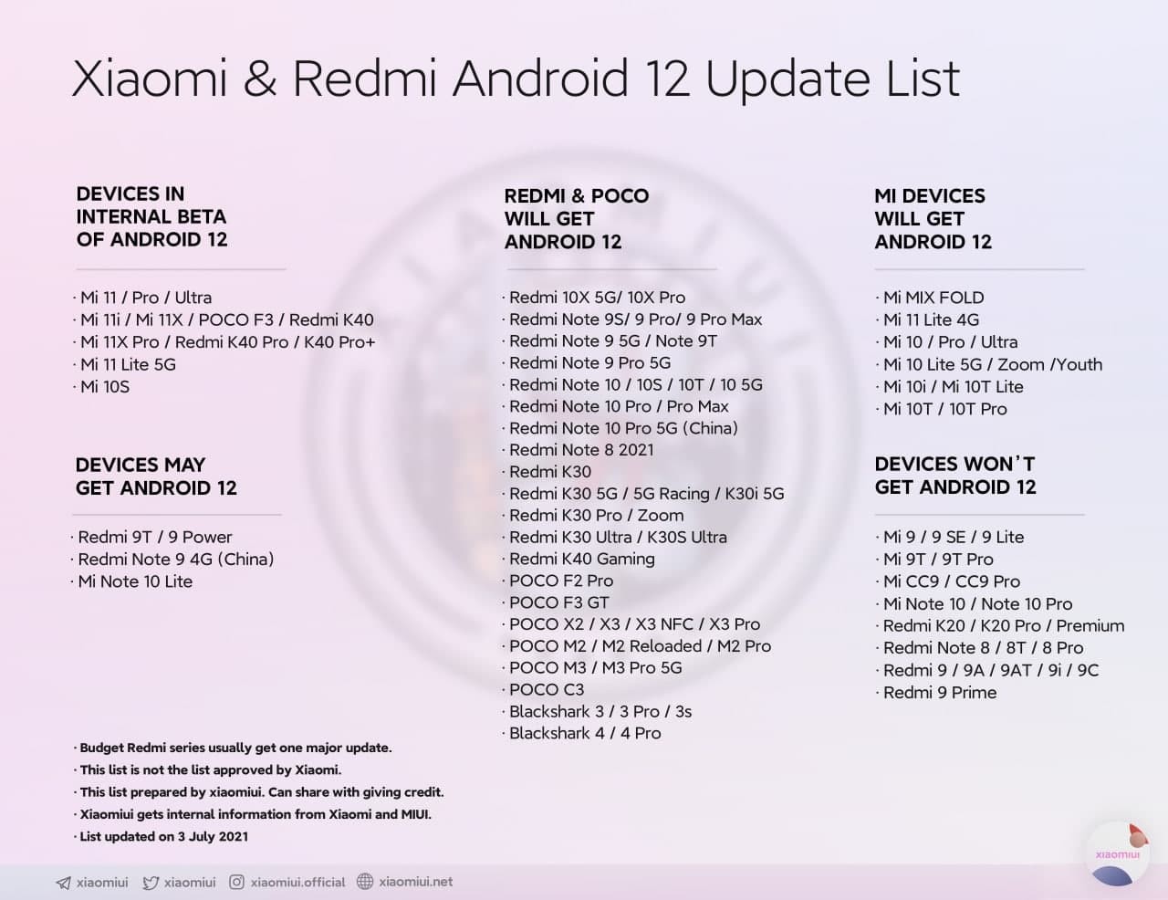 This list prepared by xiaomiui. Can share with giving credit.
